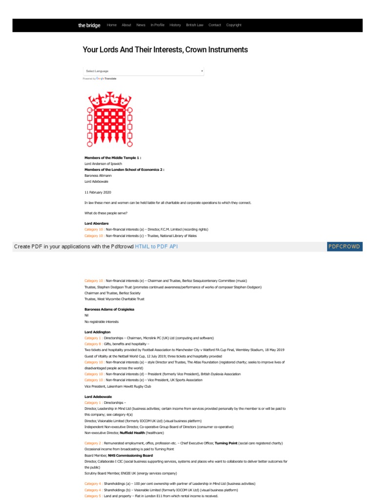 458 British House Of Lords Interests Trustee London School Of