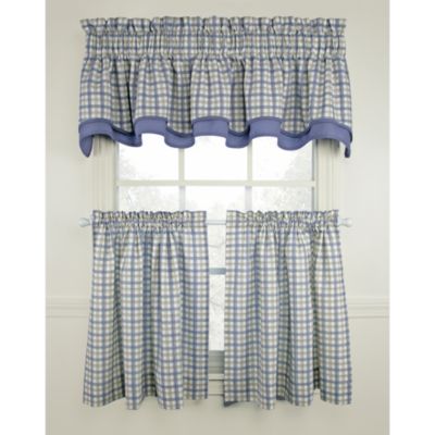 Bristol Plaid Window Curtain Tiers Blue 100 Cotton Bed Bath