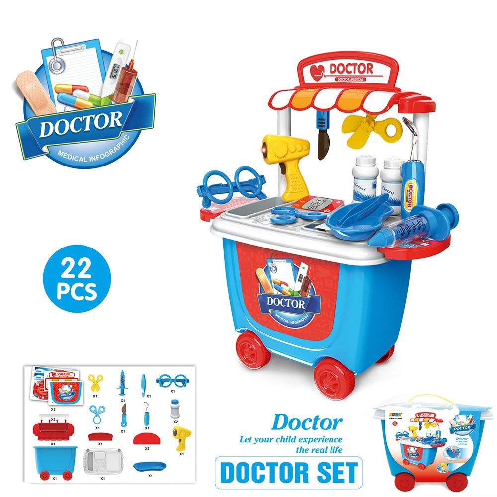 Realeos Kids Pretend Play Toy Box Playset Kitchen Doctor Set 7