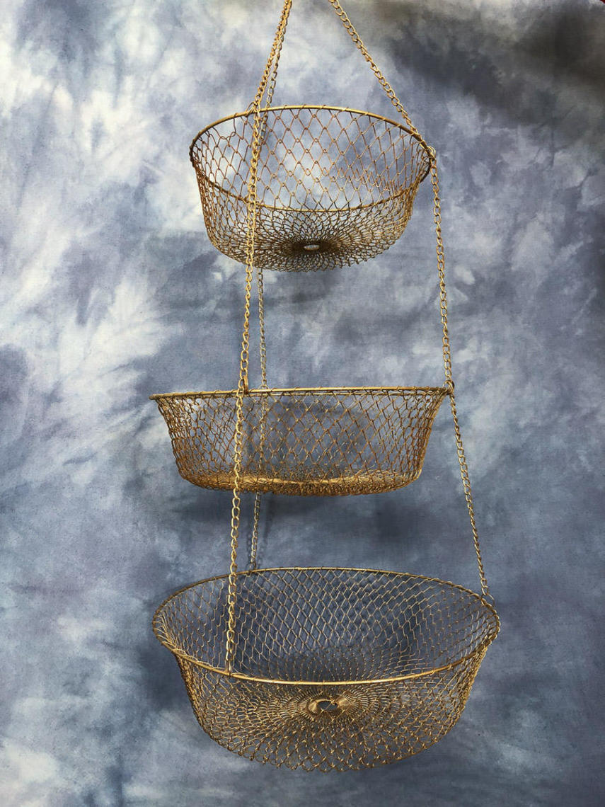 Vintage Extra Large Metal Chain Mesh Wire Three Tier Hanging