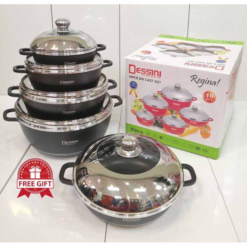 10 Dessini Italy Non Stick Ceramic Coating Cooking Pot Set Kitchen