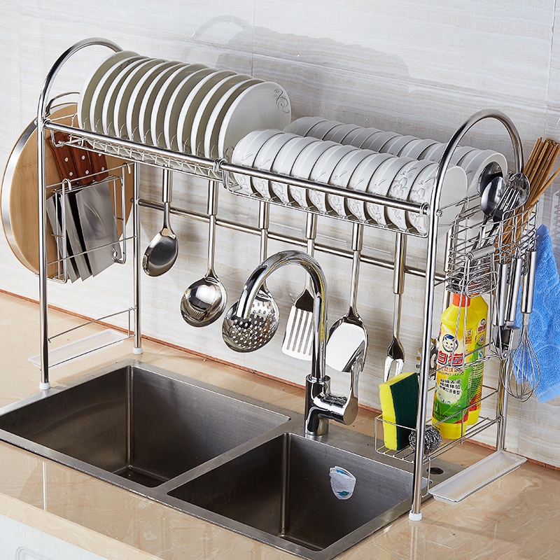 Double Sink Rack Stainless Steel Dish Rack Multifunctional Storage