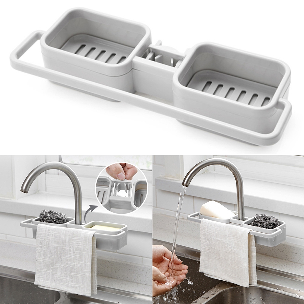 Kitchen Sink Faucet Sponge Soap Storage Organizer Cloth Drain Rack