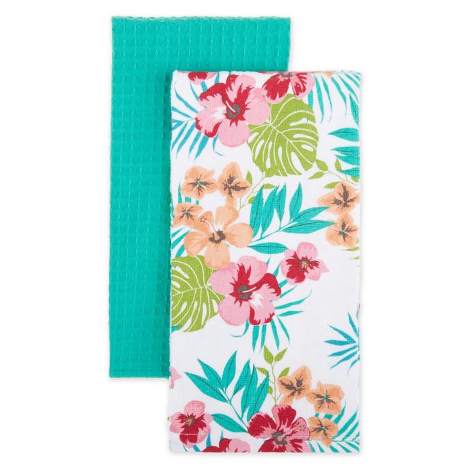 Homewear Linens Hibiscus Kitchen Towels Set Of 2 Bed Bath Beyond